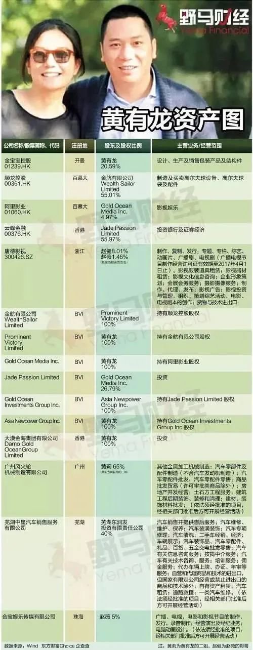 除了广为东说念主知的,黄有龙、赵薇用5500万自有资金意欲撬动30亿杠杆资金违章收购万家文化(600576.SH),引来公论和监管的疾风暴雨外,鸳侣俩还在A股、港股市场有诸多布局。