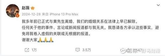 尽管赵薇于2024年底在微博上官宣与黄有龙离异,强调“黄有龙的债务与我无关”。可是由于这笔担保是在婚配存续本领进行的,是以在法律上,担保包袱并不行奉命。